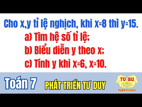 » Cho biết hai đại lượng x và y tỉ lệ nghịch với nhau và khi x=8 thì y=15. a) Tìm hệ số tỉ lệ; b) Biểu diễn y theo x; c) Tính giá trị của y khi x=6, x=10.